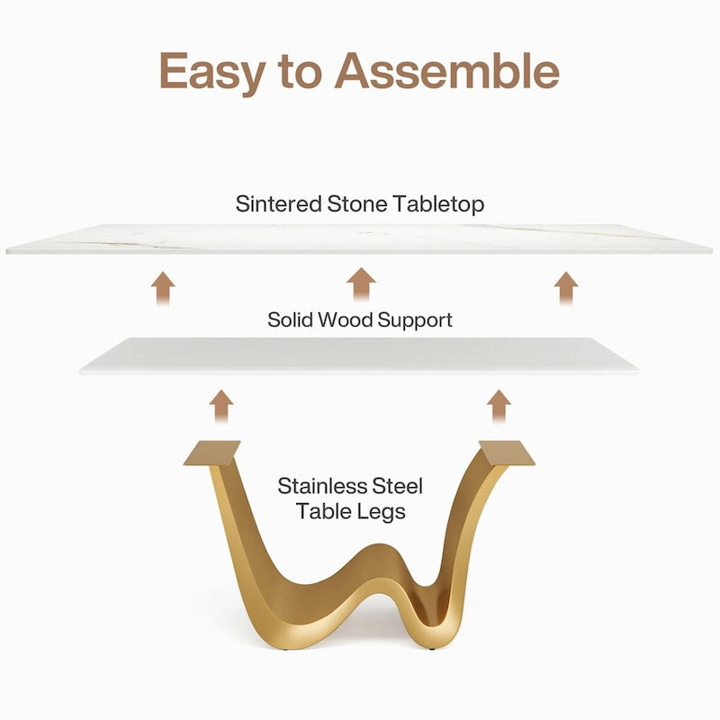 Sculpt an elegant dining experience with this 78.74-inch Sintered Stone dining table. Adorned with a unique katakin pattern on a heat-resistant top, it stands sturdily on a distinctive W-shaped stainless steel base. A picture of refinement meeting robustness, this kitchen table is a centerpiece of any dining space.