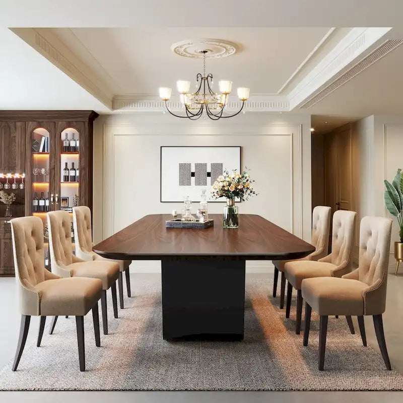 - The dining room table boasts a 78.74-inch rectangular surface, providing ample dining and serving space