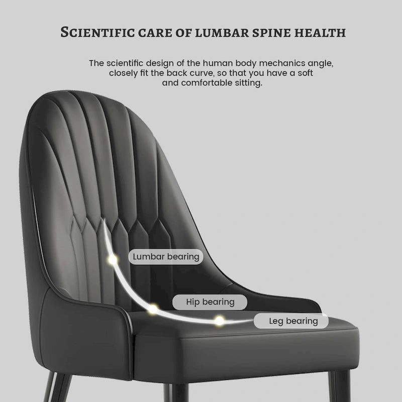 Comfortable Dining Chairs: These 8 side chairs are made of faux leather and filled with highly resilient foam. The curved backrest is ergonomically designed to provide better support and relieve back pressure, which increases comfort.The chair color is black.