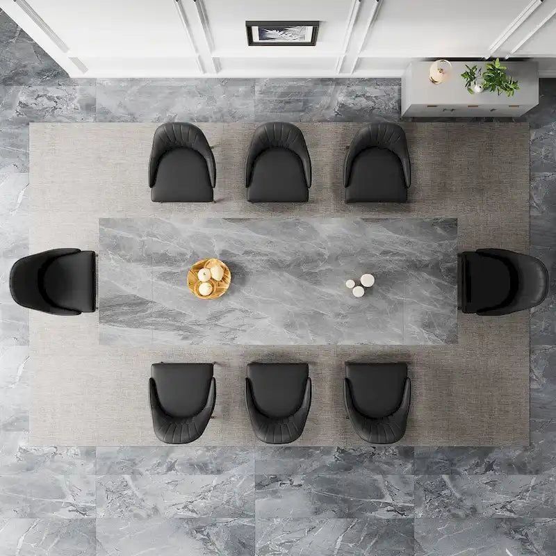 9 - Piece 110.24 Extendable Sintered Stone Dining Table and 8 Leather Chairs Dining Set