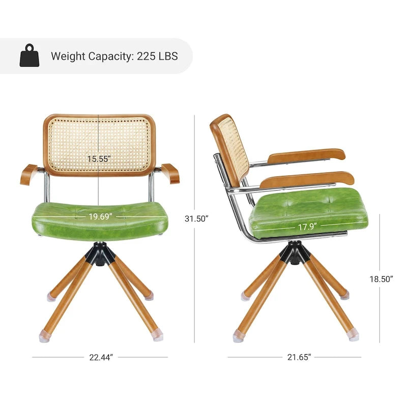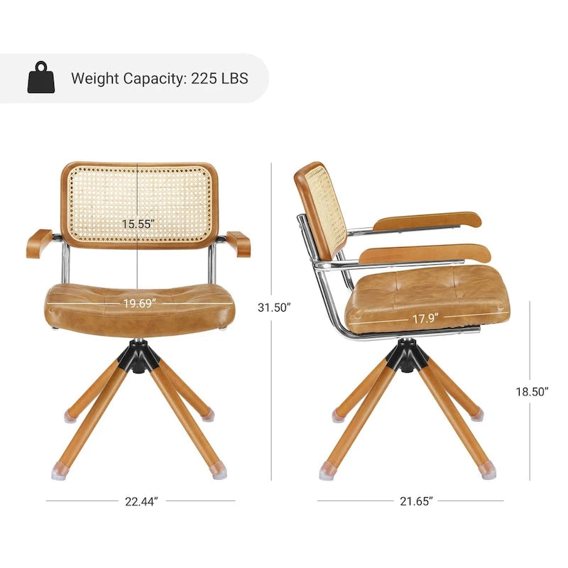 Luxurious Design: The Art Leon Modern Swivel Upholstered Accent Arm Chair exudes luxury and sophistication with its combination of wood armrests and legs, faux leather upholstery, and rattan cane backrest. It instantly elevates the aesthetics of any living space.