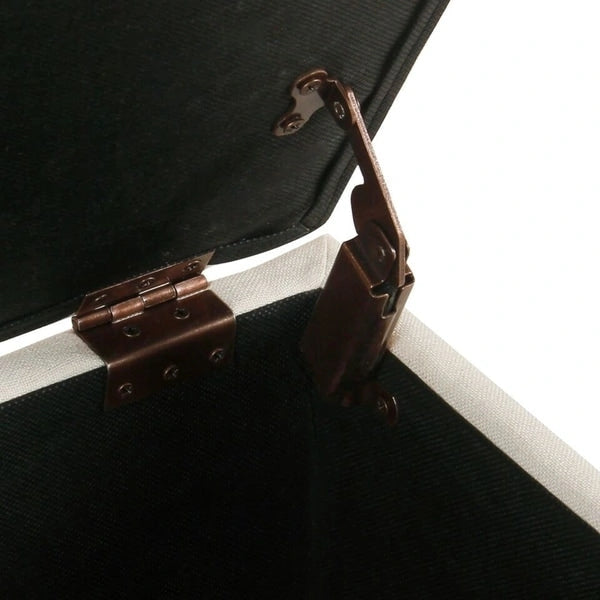 Introducing the Copper Grove Muir Button Tufted Storage Bench - the perfect blend of style and functionality for your home. Designed to provide ample storage space, this bench can be placed in your living room, family room, or bedroom to serve various purposes. With its sturdy solid wood legs in a dark walnut finish, soft textured fabric upholstery in a neutral cream color, and a button-tufted top for comfortable seating, this bench is a premium addition to any space. The hinged lid allows for easy access to the spacious storage compartment, making it easy to store pillows, blankets, or any other items when not in use. Assembling and maintaining this bench is effortless, making it an excellent investment for any home.