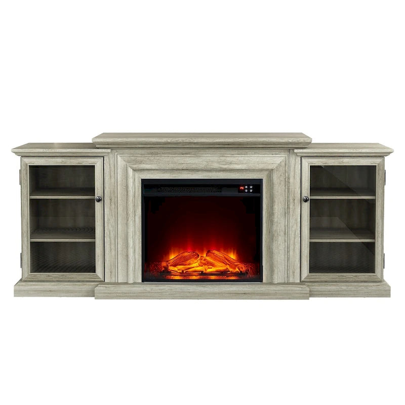 Add a touch of rustic elegance to your living space with our Farmhouse TV stand featuring a built-in fireplace. With a generous 70 width, it accommodates TVs up to 70, and the 23 firebox offers efficient heating for up to 400 square feet, ensuring a cozy ambiance during cold nights. This uniquely designed TV stand comes with two spacious cabinets, providing ample storage for all your media essentials. The glass door design adds a touch of sophistication, while the cohesive single-color finish exudes a sense of stability and grandeur. With adjustable shelves, it offers versatility to cater to your organizational needs. Upgrade your entertainment setup with this remarkable Farmhouse TV stand today!