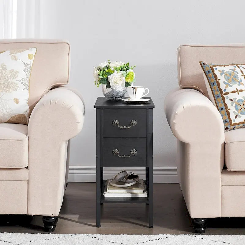 Industrial 2-Drawer Nightstand Narrow End Side Table (Set of 2)