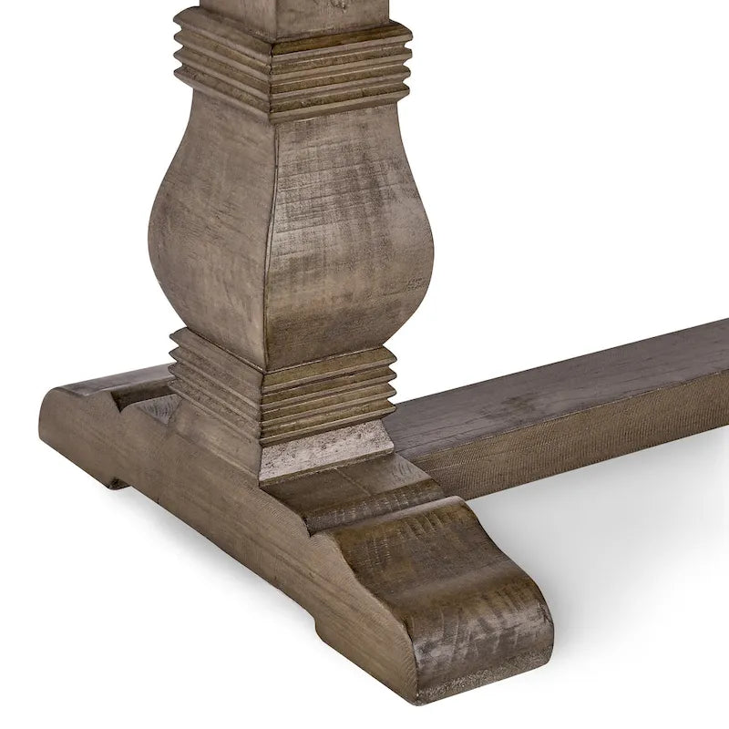 - Hand-carved pedestal base and trestle base