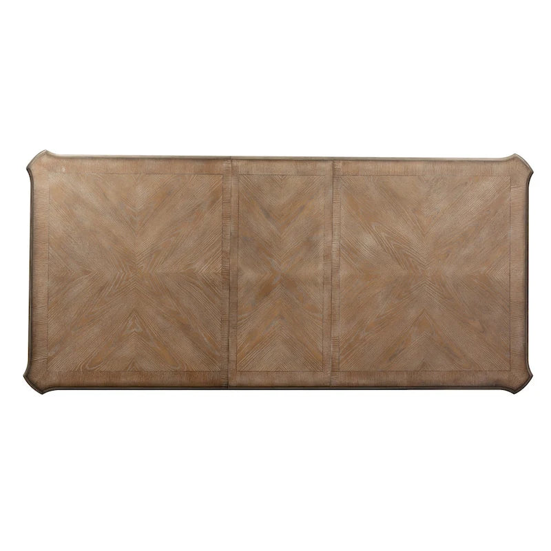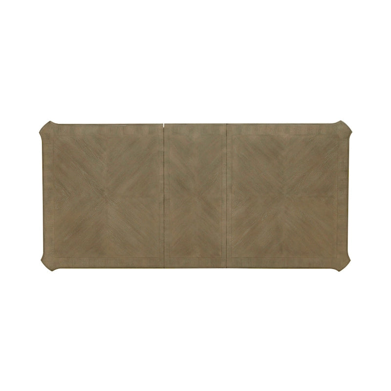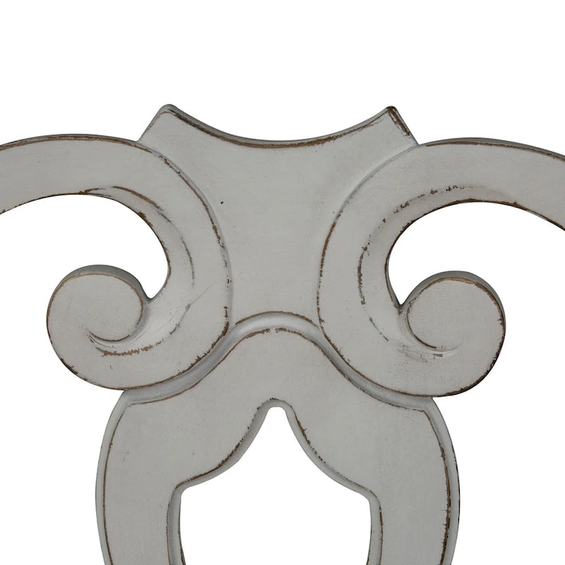 Create a grand gathering with the Magnolia Manor optional seven-piece rectangular table set, consisting of six splat back side chairs and a rectangular leg table. Crafted of poplar solids with cathedral white oak veneer, this kit features either an Antique White finish with heavy chipping and a weathered brown or a stained Weathered Bisque finish. The table offers a fancy face top, canted corners, one 18 removable leaf to easily accommodate guests or a large family and is anchored by faceted turned legs. The chairs feature the perfect blend of European design with a saddle shaped seat, dog bone accents on the splat back, nylon chair glides to protect your flooring, and beautifully faceted turned legs. Warm antique finishes and artistic distressing along with grand scale create a piece to be passed to generations.