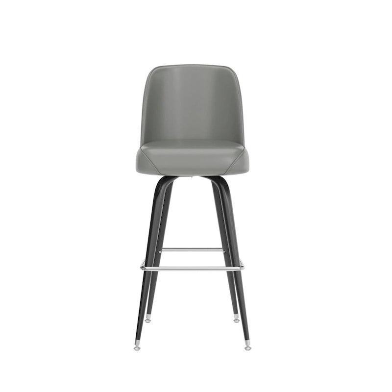 Commercial furniture needs to be both durable and low maintenance so metal barstools are a popular choice for furnishing restaurants, pool halls, lounges, bars and other high traffic establishments. This stool is easy to clean, which is an important aspect when it comes to a business. Add seating to your home bar or furnish the bar in your hotel with these durable upholstered stools. The contoured bucket seat envelopes the user in comfort. The tubular footrest not only supports your feet, but acts as additional reinforcement to help secure the legs. The swivel floor glides help protect your floors and ensure smooth gliding. Use this bar height stool in your kitchen, dining room or home bar and give your decor a fresh look.