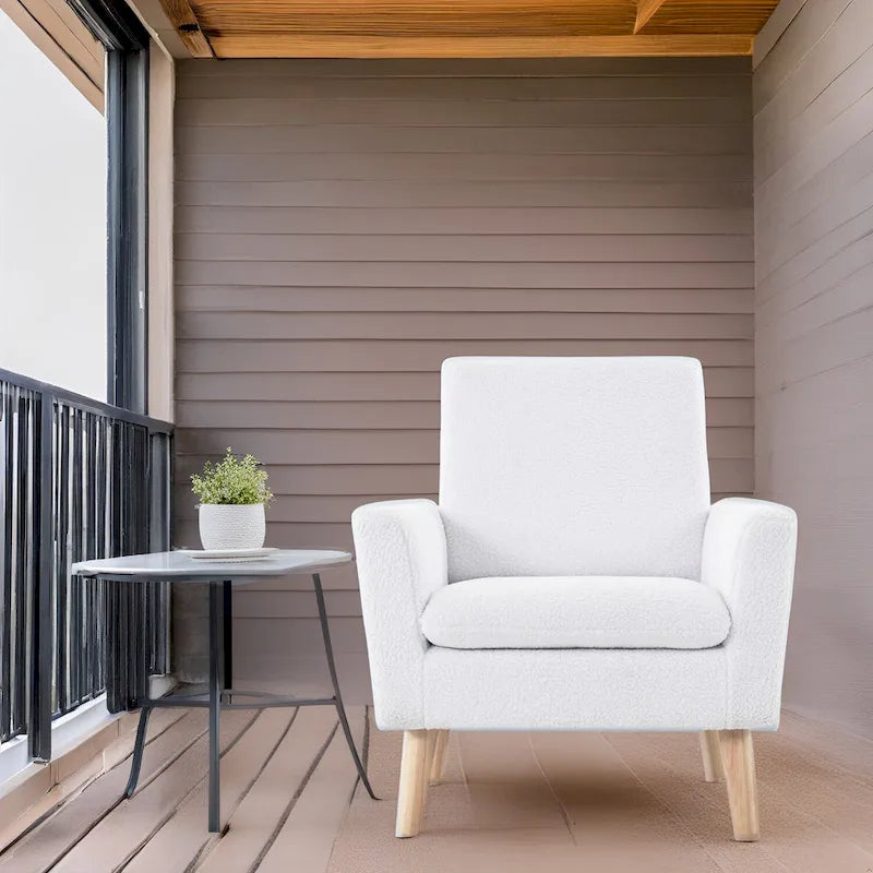 SLEEK DESIGN ACCENT CHAIR WITH PLUSH FABRIC: Experience contemporary elegance with our upholstered mid-century modern chair. Its soft teddy fleece fabric gives ultimate comfort and the sleek design enhances any room, blending style seamlessly with convenience.