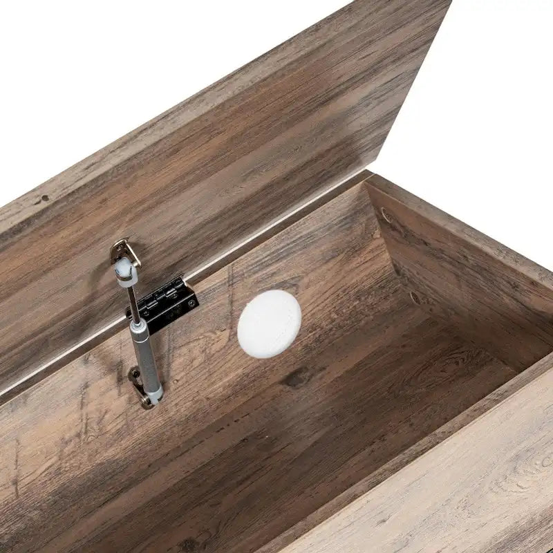 This top lift, rustic farmhouse bench fuses practicality and elegance for your home. Tailored for modern lifestyles, it'll elevate your entryway, mudroom, or bedroom giving a dedicated place for shoes, baskets, or even your favorite throw blankets. Designed with minimalist yet stylish appeal, it compliments any existing decor effortlessly. A testament to durability, the pneumatic hinges provide noise reduction while the bench supports up to 300lbs static weight. The open concept bottom shelf supports up to 50 lbs. static weight. Protective glides ensure your floors remain unscathed. The right mix of luxury and functionality, this bench tells it's own story where form meets function, and the ordinary transforms into extraordinary.