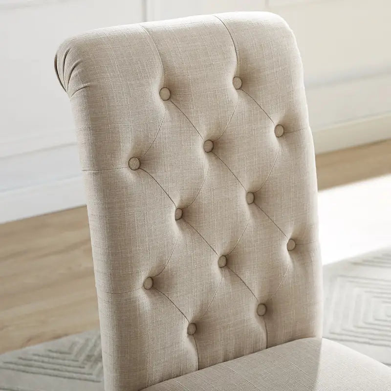 Modern Style 5-Piece Dining Set with Cross Base Round Table and 4 Button Tufted Linen Upholstered Chairs