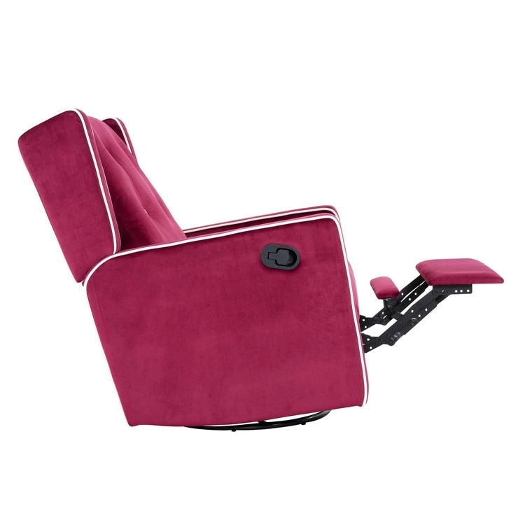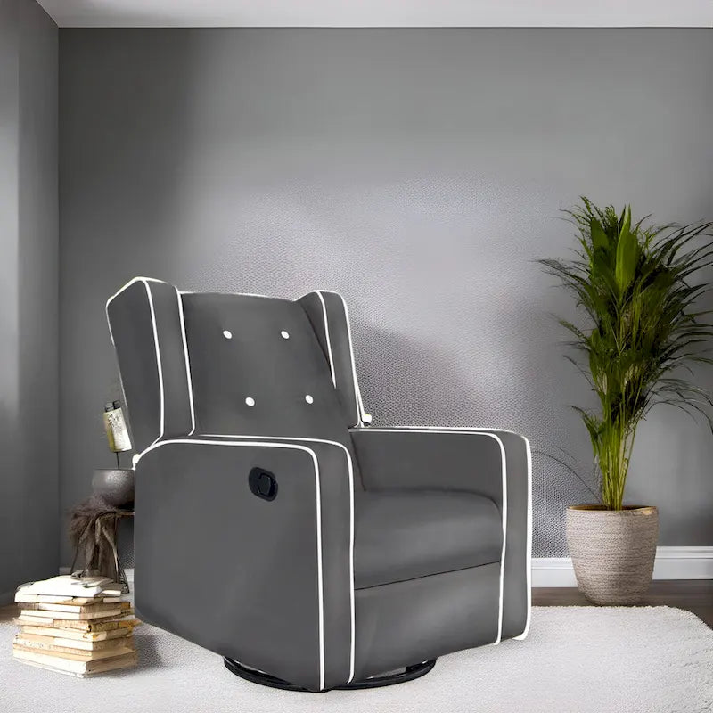 ERGONOMIC TIMELESS DESIGN: This Breastfeeding Chair / Maternity Chair / Swivel Glider Rocker Recliner. The design of this swivel rocker has a square silhouette along with track arms and button tufted on the backrest. The Glider is made of top quality microfiber fabric, which feels very soft and plush. The Nursing Chair is a perfect pick for nurseries and living areas alike, Enjoy your leisure time and fully relax your body and mood with this comfortable glider recliner nursery chair.