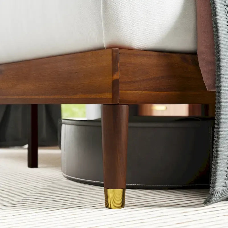 - A MID CENTURY SHOWSTOPPER - Designed with elegance and quality in mind, this mid-century inspired foundations solid acacia wood frame, brass tipped legs, and cozy upholstered headboard are as superbly crafted as they look