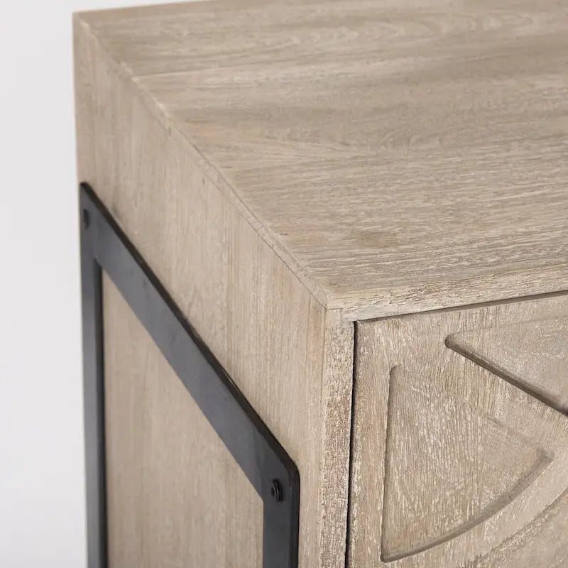 Rivien Light Brown Solid Wood with Black Metal Frame 2 Door Accent Cabinet