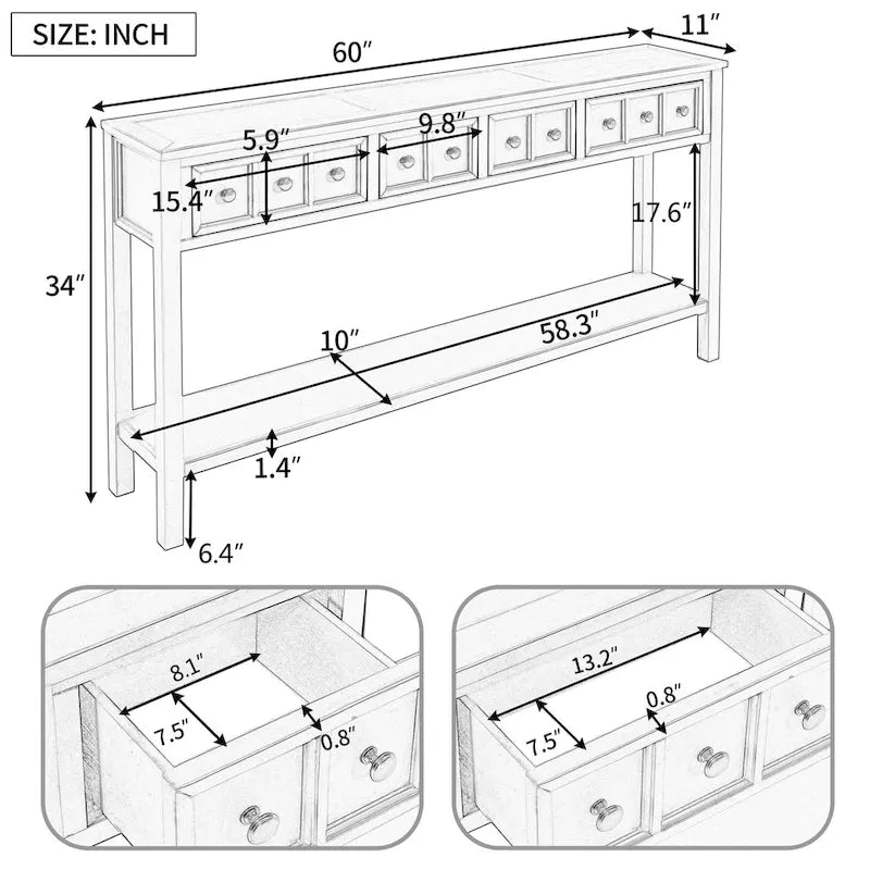 Rustic Entryway Console Table, 60 Long Sofa Table with two Different Size Drawers and Bottom Shelf for Storage