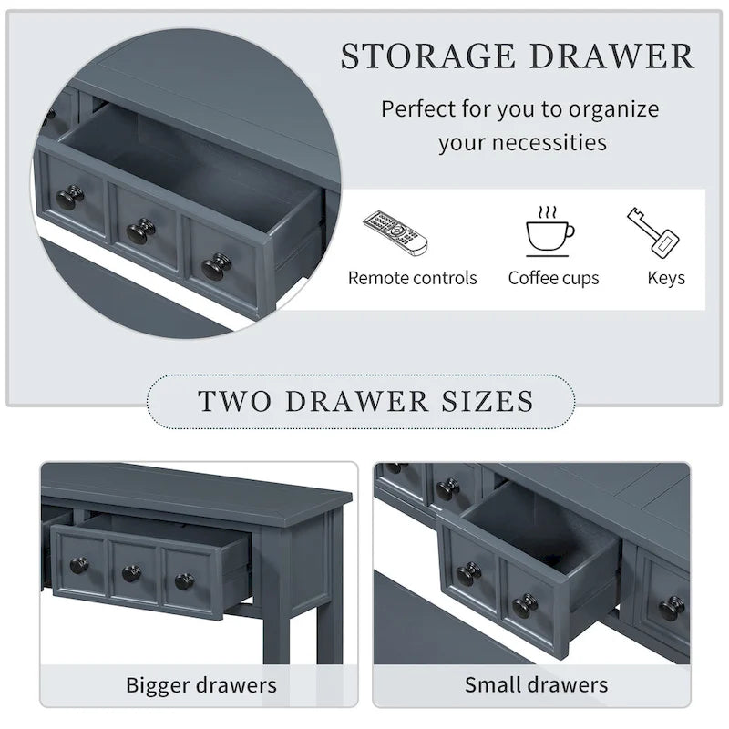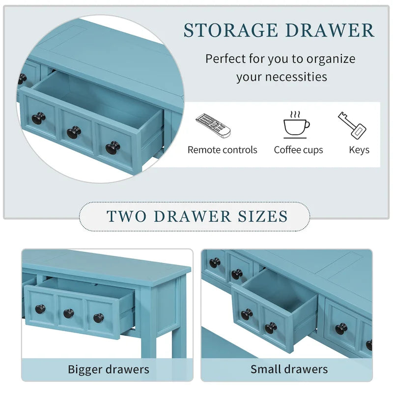 - This side console table features two small drawers and two bigger drawers, perfect for you to organize your necessities and accessories of all different sizes - such as remote controls, cables, keys or coffee cups. With smooth opening and closing, these drawers will keep the dust off, while also providing beautiful external decorations in the form of uniquely patterned knobs.