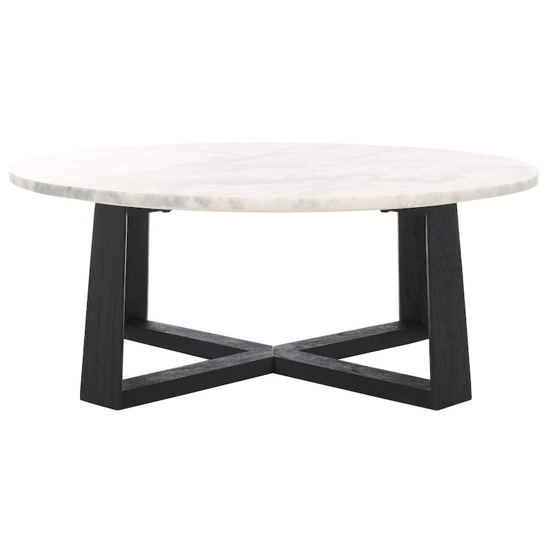 Refresh your space with the modern charm and organic appeal of our Trenton coffee table. Mixed-material elegance lends polished contrast and elegance to our streamlined coffee table. The thick, tapered legs of the table gracefully intersect to attain an eye-catching presence. Its round tabletop showcases the natural veining of white marble. It is complemented with the rich tonal variation and organic textures of Acacia wood. Creating a beautiful harmony of textures, our coffee table attains a room-brightening appeal in your living space, bedroom, or home office.