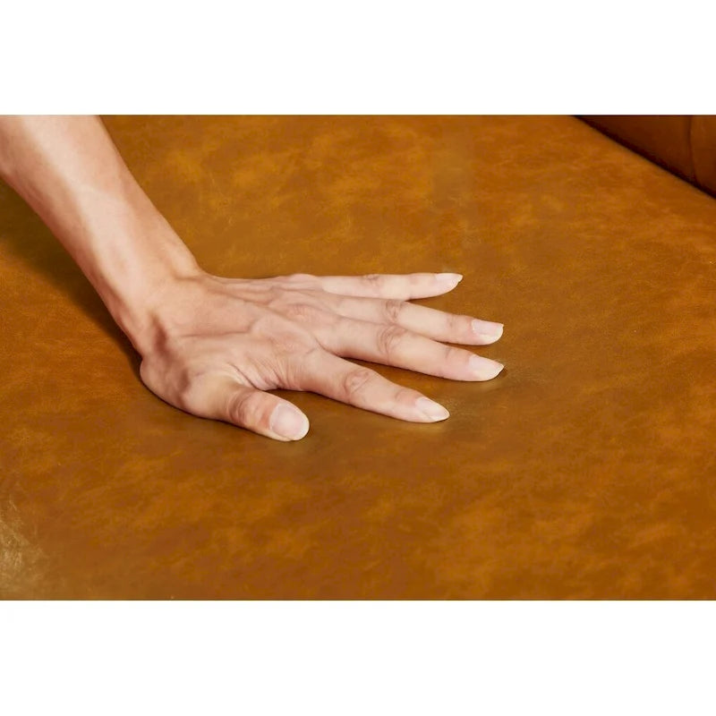 - Premium Quality and Supportive Design - Filled with 2.5 memory foam and supportive PU leather, this faux leather sofa couch ensures a comfortable experience with even weight distribution. The high-quality fabric is stain-resistant, easy to clean, and promises a long service life. Sturdy wood legs provide reliable support, accommodating up to 550 lbs.