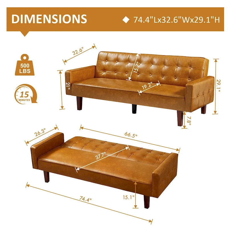 - Compact and Ideal for Small Spaces - Perfect for compact living, this sofa bed measures 66.14(L) X 37.79(W) X 15.15(H) when used as a couch is 73.62(L) X 26.37(W) X 21.08(H) when used as a bed. Its convertible and foldable design makes it an ideal choice for small spaces like apartments, dorms, guest rooms, offices, and more.