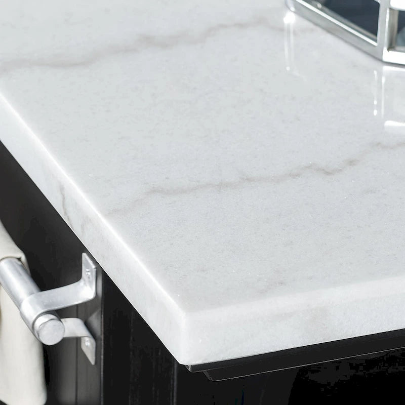 - Ebony wood finish contrasts with the gorgeous white marble top
