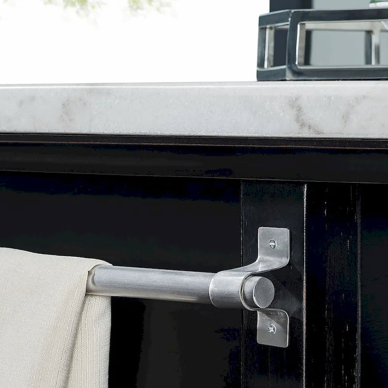 A beautiful way to add storage and additional seating to your kitchen - the Ariana kitchen island. Finished in ebony with a genuine white marble top, this island offers three drawers with dovetail construction and side mounted drawer glides, two cabinets with an adjustable shelf for storage, hanging stemware and wine bottle storage. The top features an overhang that can accommodate additional seating.