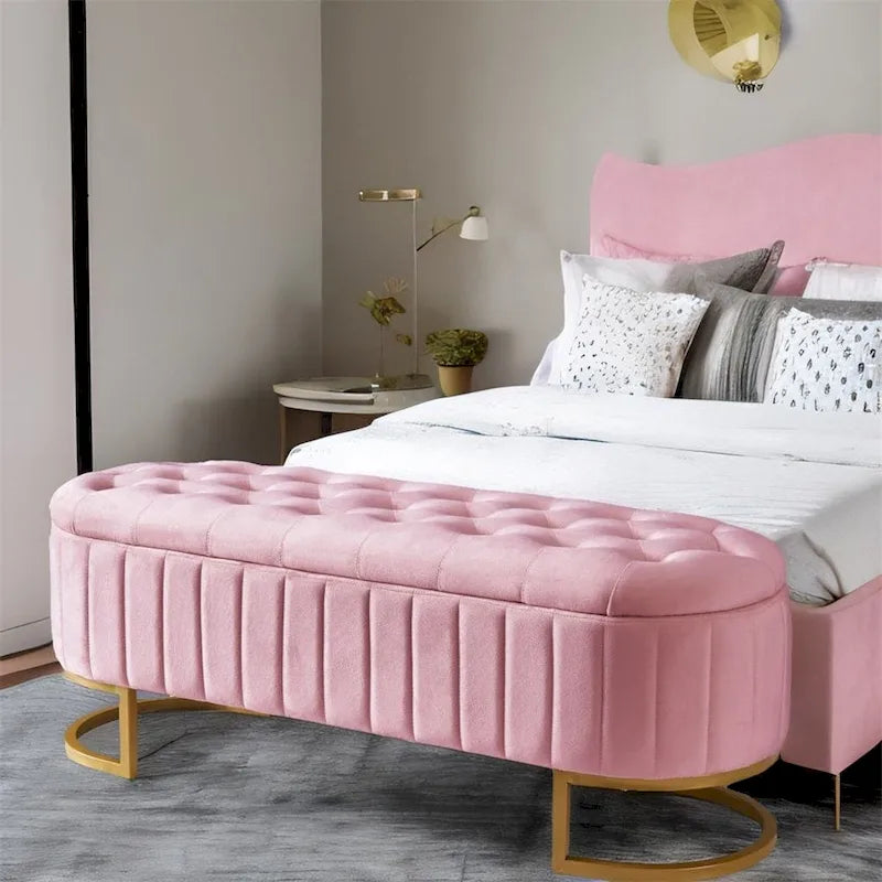 Sturdy ConstructionThis storage ottoman is constructed of metal legs and velvet fabric.The inside of the bedroom bench is filled with thick high-resilient sponge, which is not easy to deform after long-term sitting, making the whole footstool more durable without sacrificing any comfort.