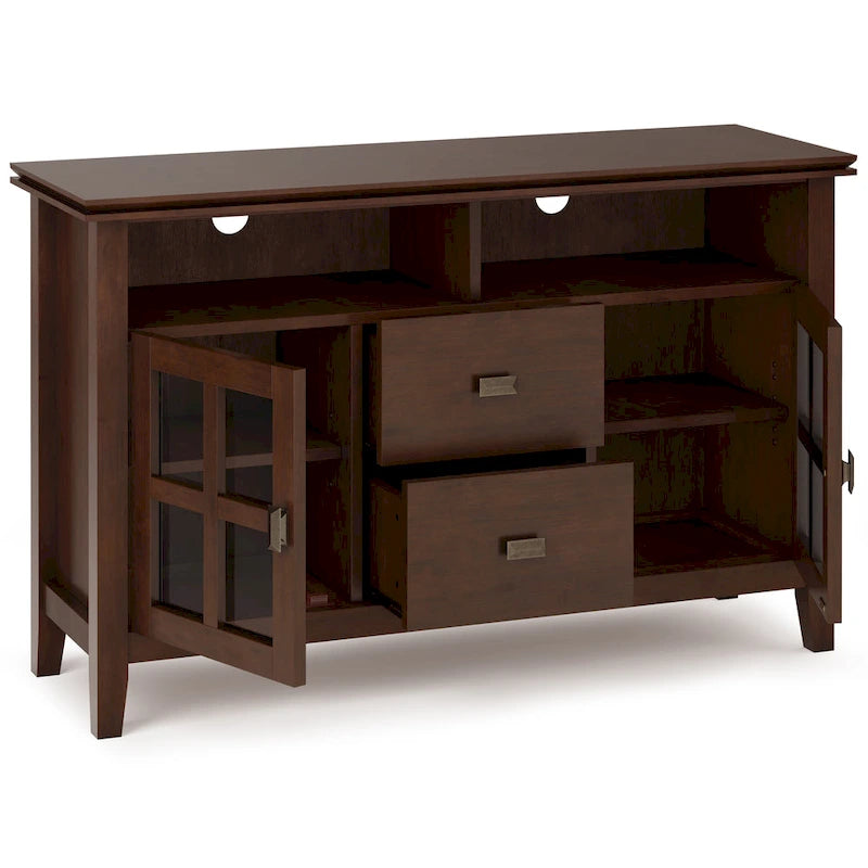 WYNDENHALL Stratford SOLID WOOD 48 inch Wide Contemporary TV Media Stand in Russet Brown For TVs upto 55 inches